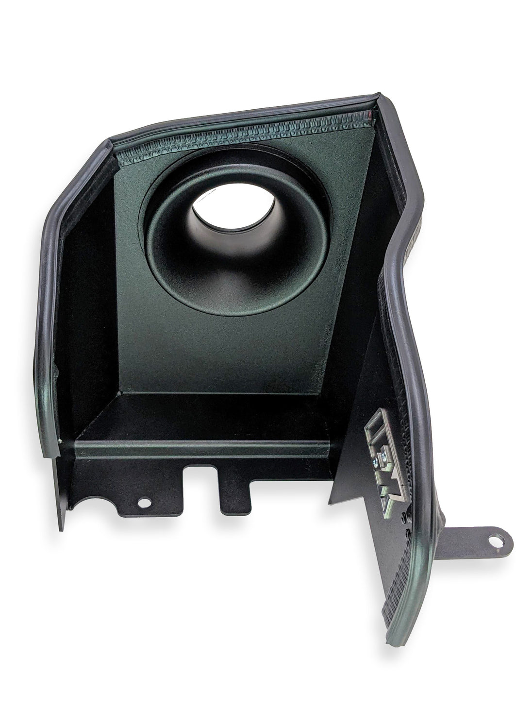 Powder-coated black aluminium air-box, with 6-inch bell mouth and top blister rubber seal.